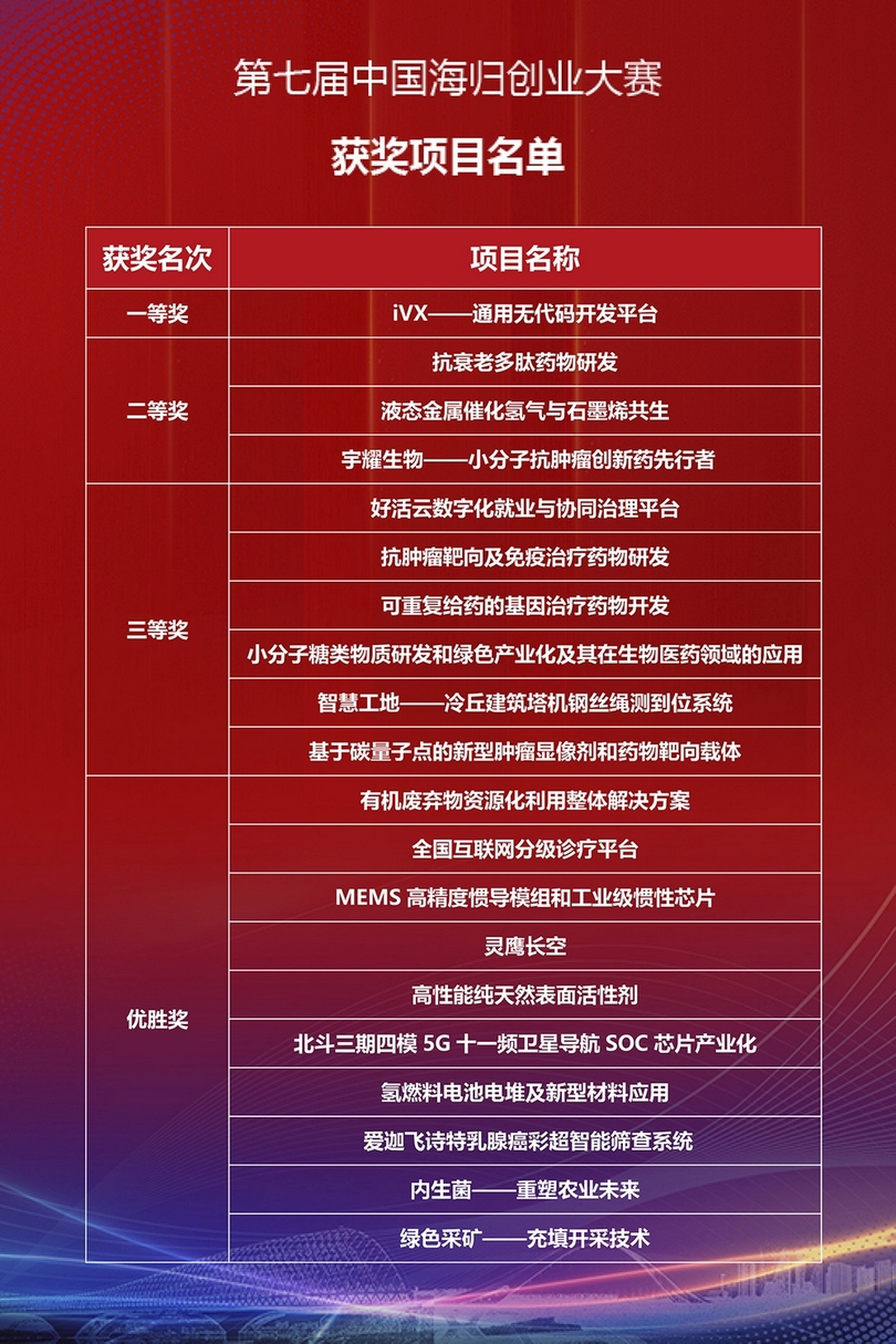 2021(第七屆)中國海歸創業大賽深入學習貫徹習近平總書記重要講話精神和黨的十九屆五中全會決策部署,圍繞“十四五”規劃和二〇三五年遠景目標,集聚更多創新要素,打造開放合作平臺,更好發揮資源互通和創新協同作用,在資源整合、需求對接、服務支持等方面進一步探索加強。本屆大賽自7月正式啟動以來,得到了廣大海歸創業企業和團隊的熱情參與。到報名截止,共有601個海歸創業項目通過資格審查入圍初賽,經對項目開展實地調研和組織專家進行評審,共遴選出112個項目入圍復賽。復賽、決賽及對接洽談活動原定于2021年10月下旬在北京昌平未來科學城舉辦,因受國內新冠肺炎疫情反彈影響而延期。考慮到目前各地疫情防控工作仍處于鞏固階段,本屆大賽復賽、決賽最終決定采用在線方式舉行。2022年6月27日至30日,由中國技術創業協會留學人員創業園聯盟和北京市昌平區人民政府共同主辦的第七屆中國海歸創業大賽復賽、決賽在線成功舉辦。