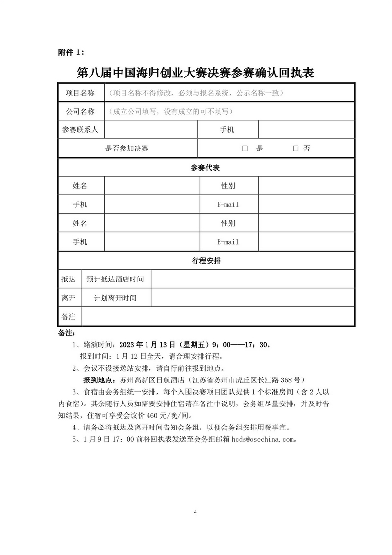 【下載附件】附件1:第八屆中國海歸創(chuàng)業(yè)大賽確認(rèn)參賽回執(zhí)表