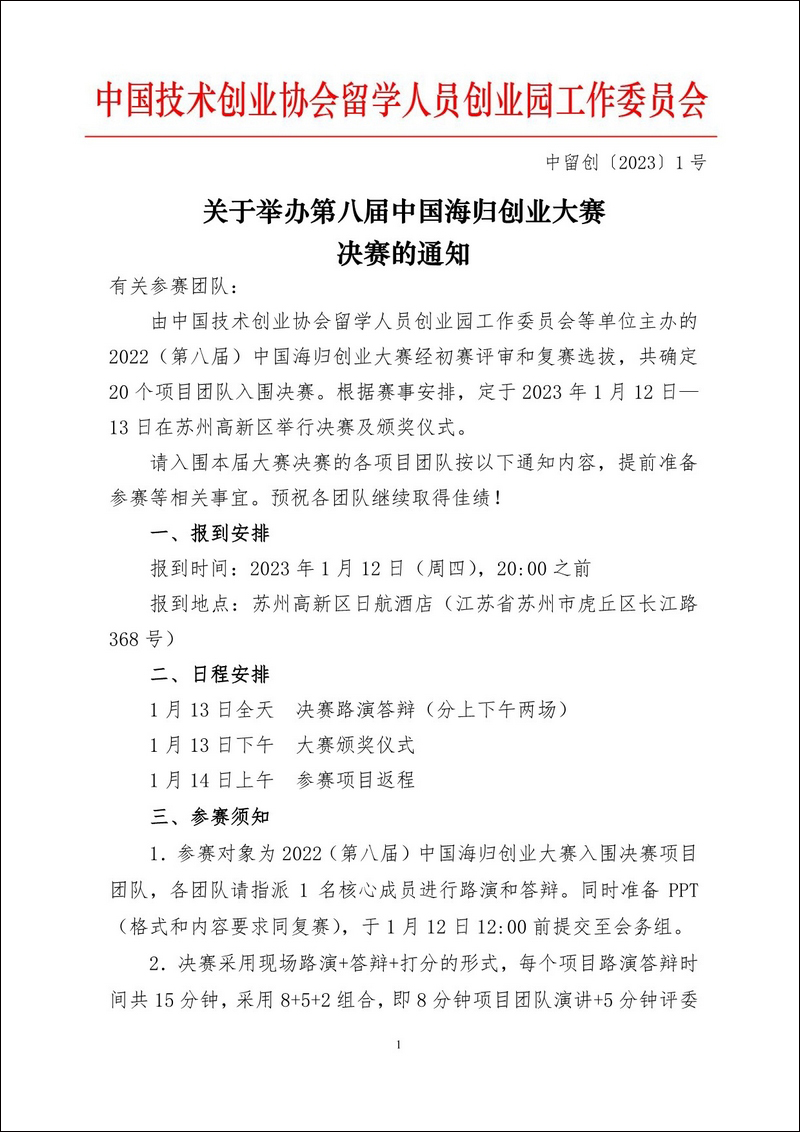 發(fā)文時(shí)間:2023-01-06 發(fā)文單位:中國技術(shù)創(chuàng)業(yè)協(xié)會(huì)留學(xué)人員創(chuàng)業(yè)園工作委員會(huì) 中留創(chuàng)〔2023〕1號